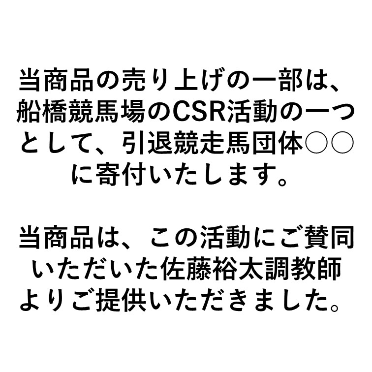 ※当商品の売り上げの一部は、船橋競馬場のCSR活動の一つとして、引退競走馬を支援する団体に寄付いたします。