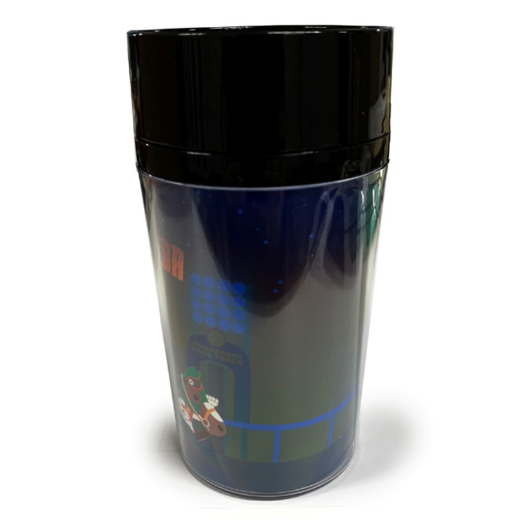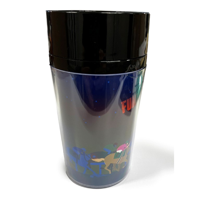 船橋競馬場のマスコット、キャロッタとキャロッペが競馬場を走るデザインのタンブラー。